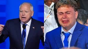 Gwen Walz, wife of the candidate, in a film about the Vice President to be. As his father spoke, Tim Walz’s son Gus was in tears, as was his daughter Hope.