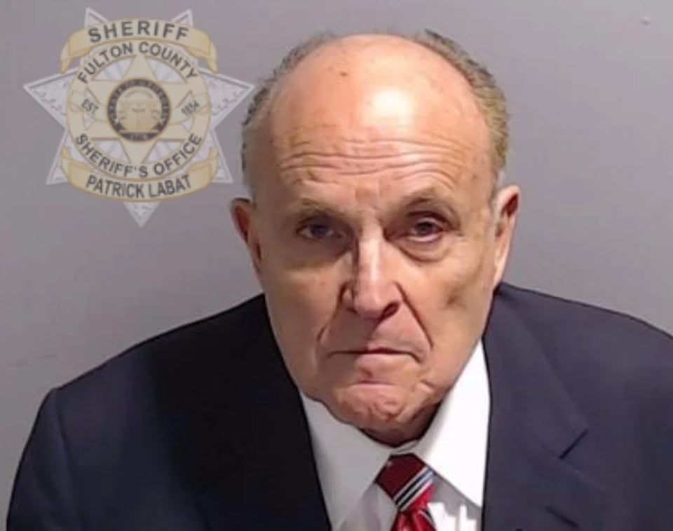 Trump ally Rudy Giuliani is booked in Georgia racketeering case.