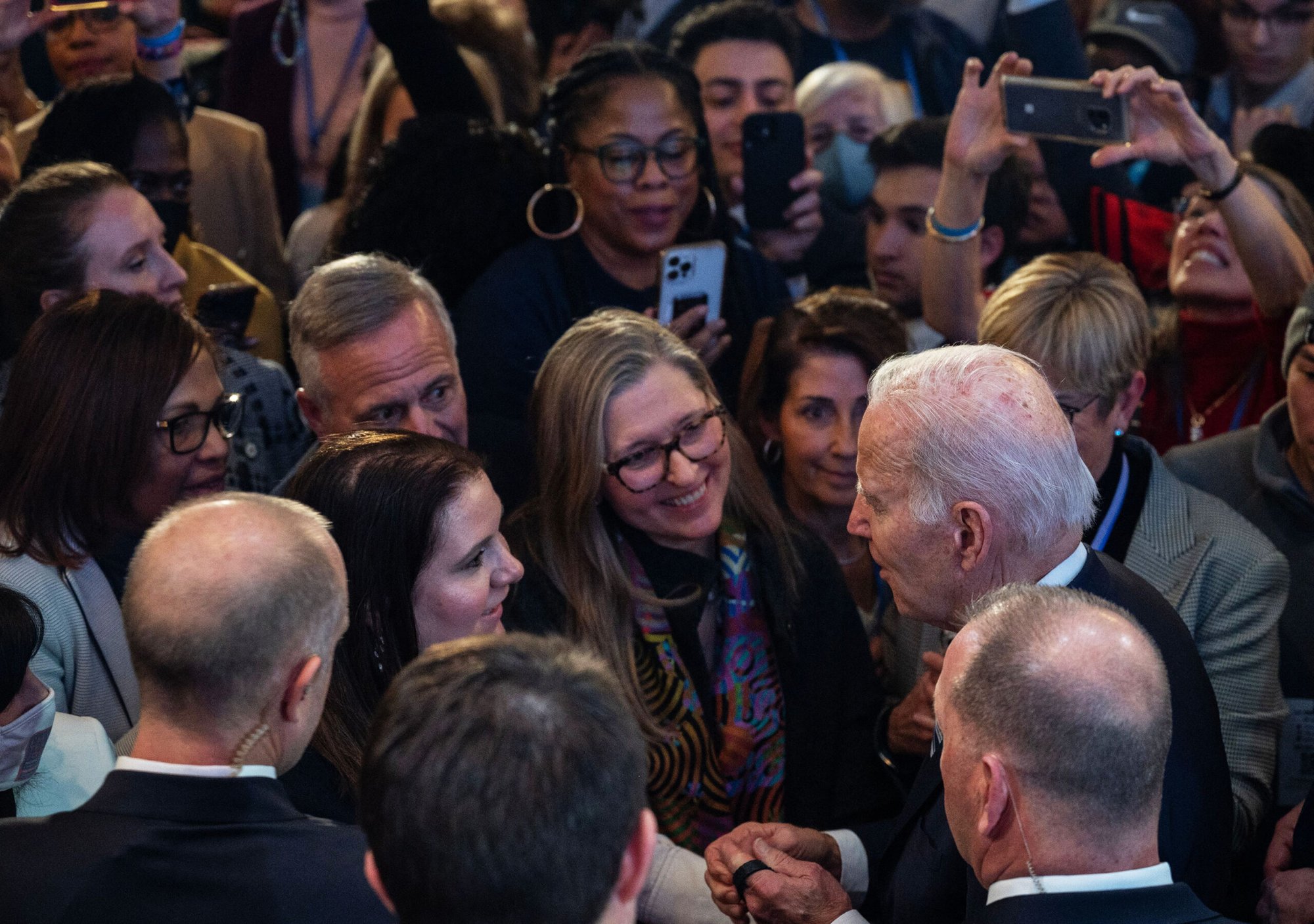 And then, in this atmosphere, Biden talked about protecting democracy. “For the last few years our democracy has been threatened, attacked, and put at risk,” he said. “Put to the test here, in this very room, on January 6th.”