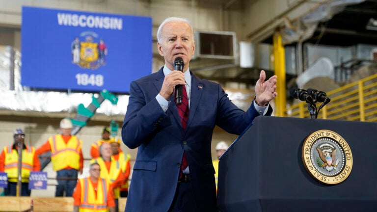 Biden, who beat Donald Trump in 2020 by a narrow margin in Wisconsin, talked about helping workers make “a couple more bucks” and preventing them from “getting stiffed” by companies that “play us for suckers.”