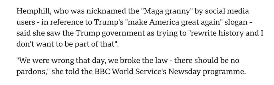 We need to be sure to keep reminding voters that Trump’s pardons for the violent rioters of January 6 betrayed us all, and his party either supported his action or were silent, though there were a few mealy mouthed exceptions like Susan Collins who split their criticisms about pardons between those issued by President Biden to protect his family members and the J6 Select Committee, and those issued by Trump which undermine the rule of law.