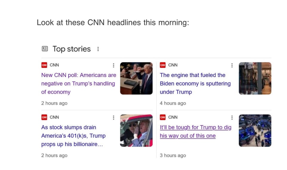 - Trump is deeply underwater on the economy and tariffs. In most polls and consumer confidence surveys Trump is no far below where he was pre-pandemic in his first term. Trump has already lost what was without doubt his most important hold on the electorate - that with him you get more opportunity, more money, a better life. In the right-leaning Emerson poll yesterday Trump was -11 on the economy. In CNN he is -12, and -22 on tariffs!!!!!!!!