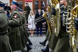 Mr. Hegseth and his wife, Jennifer Rauchet, attending a military ceremony in Warsaw. Mr. Hegseth tried to walk back his previous remarks on Ukraine later in that February.