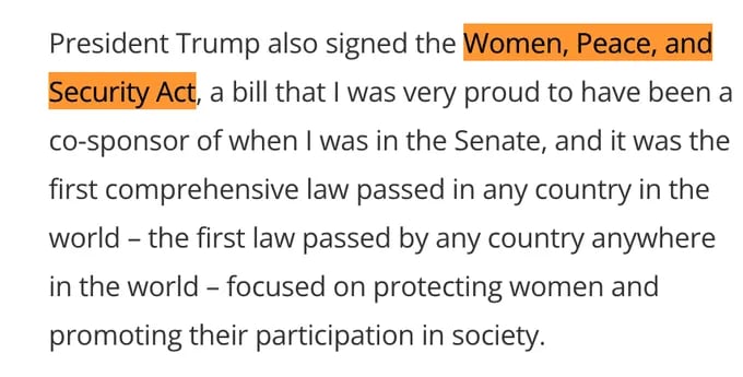 Community notes quickly pointed out that the Women, Peace, and Security Act was actually a Trump-era initiative. It was signed by Trump and — irony is on fire here — written by Kristi Noem (Trump’s DHS secretary), and enthusiastically supported by Marco Rubio (Trump’s Sec of State). Back in 2019, Trump’s White House declared: "Trump was the first global leader to sign bipartisan legislation of this kind, making the United States the first country in the world with a standalone, comprehensive law on Women, Peace and Security."
