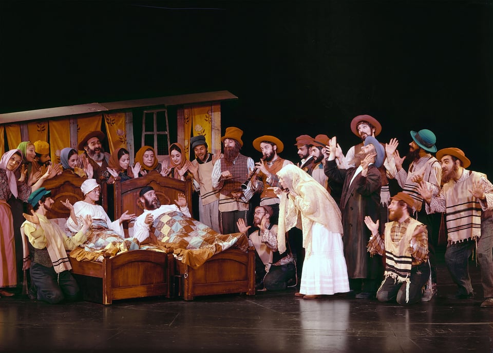 Various productions of Joseph Stein, Sheldon Harnick and Jerry Bock’s “Fiddler on the Roof” (1964), including, from top, Bette Midler (center), who made her Broadway debut as Tzeitel in 1967, during the show’s first run; Jackie Hoffman as Yente in the 2018 Yiddish Off Broadway version; and the original 1964 Broadway version.