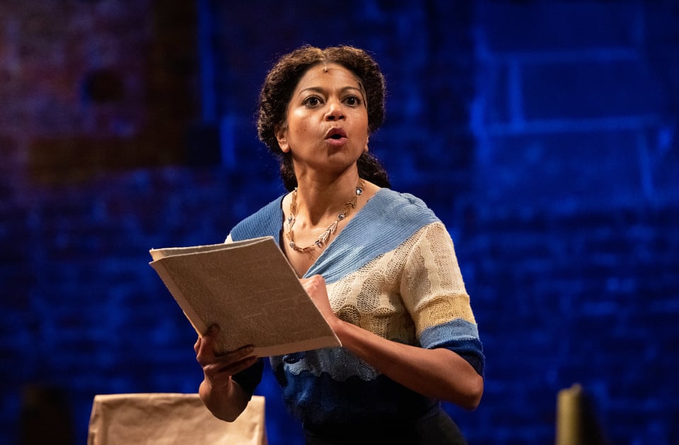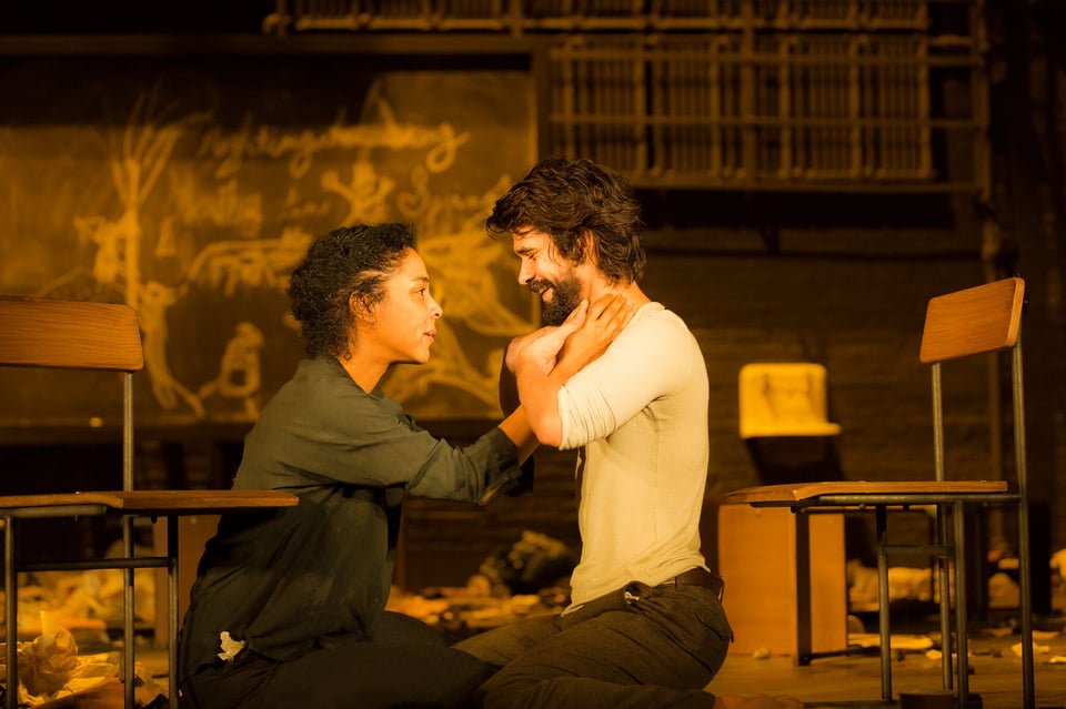 Sophie Okonedo (left) as Elizabeth Proctor with her co-star Ben Whishaw as John Proctor in the 2016 Broadway revival of Arthur Miller’s “The Crucible” (1953).