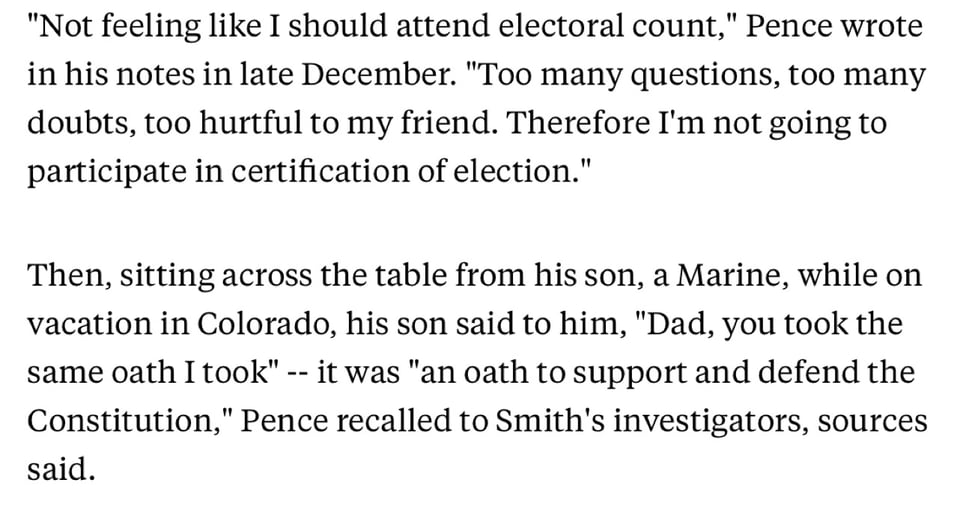 Sometime by Jan. 1: Pence’s son, a Marine, persuades him to preside, citing the oaths they both took to support and defend the Constitution, according to ABC.