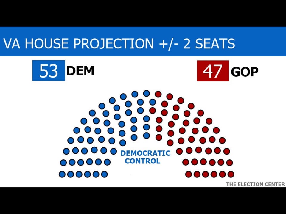 Democrats won back control of the Virginia House of Delegates. Once all the votes are counted, Democrats will hold 53 seats while Republicans will hold 47 seats with a 2 seat margin of error.