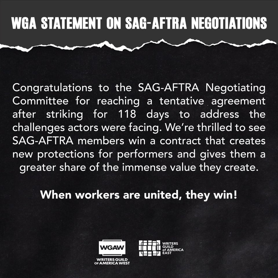 STRIKE OVER: Actors Make a Deal With Studios After 118 Days.