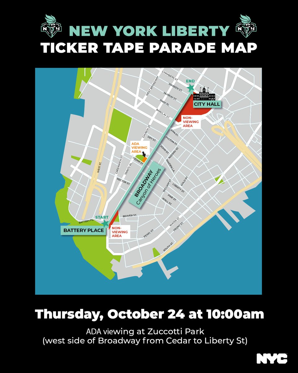 Today there will be an historic ticker tape parade in NYC honoring the 2024 W.N.B.A. Champions, the New York Liberty, which brought home the first major professional basketball championship in New York City in more than four decades.