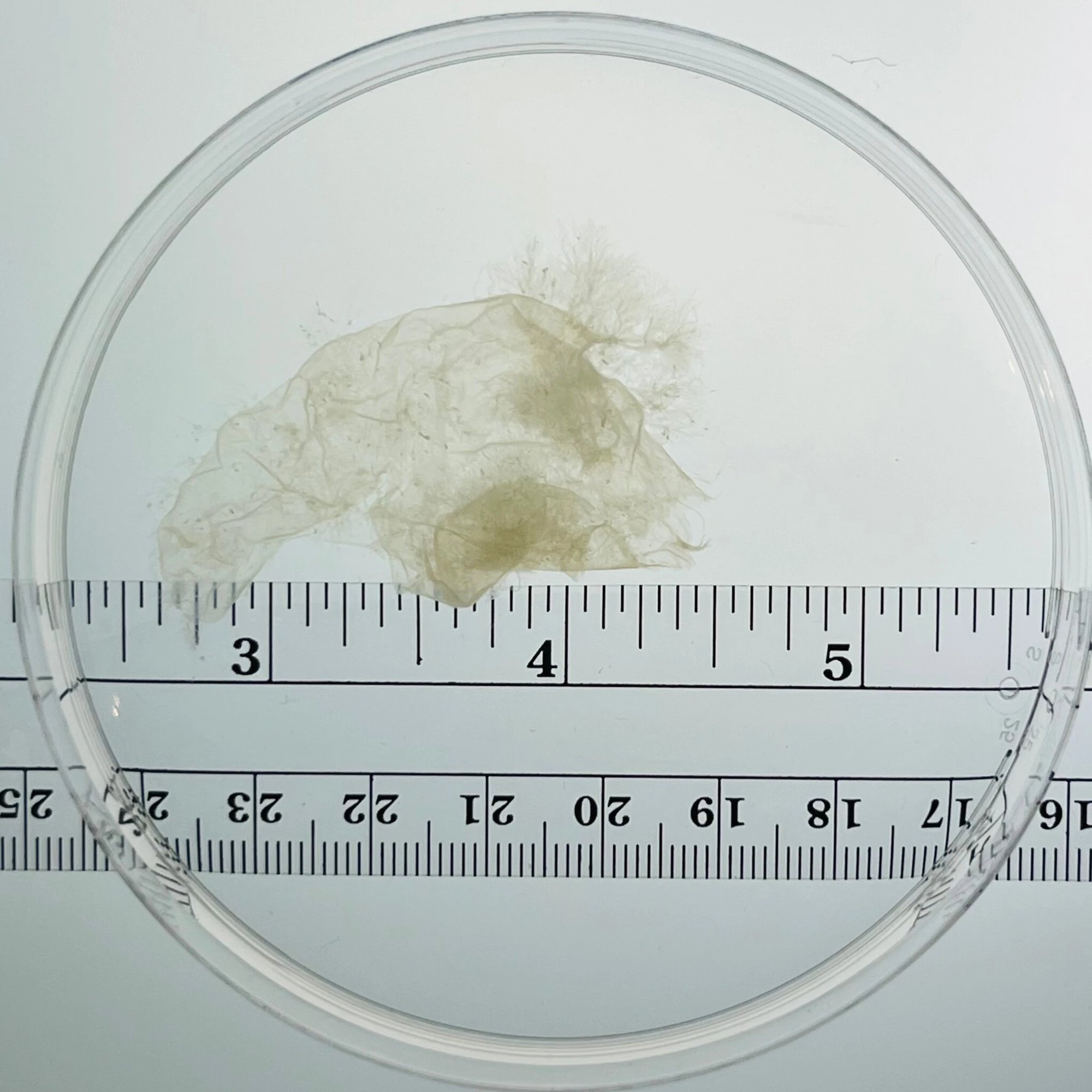 Dr. Fleischman then conducted a routine tissue examination. This involves rinsing the tissue with water using a fine sieve. She identified decidual tissue, or uterine lining, as well as a gestational sac, the visible evidence of the pregnancy. At this stage of pregnancy, the embryo is not typically visible to the naked eye.