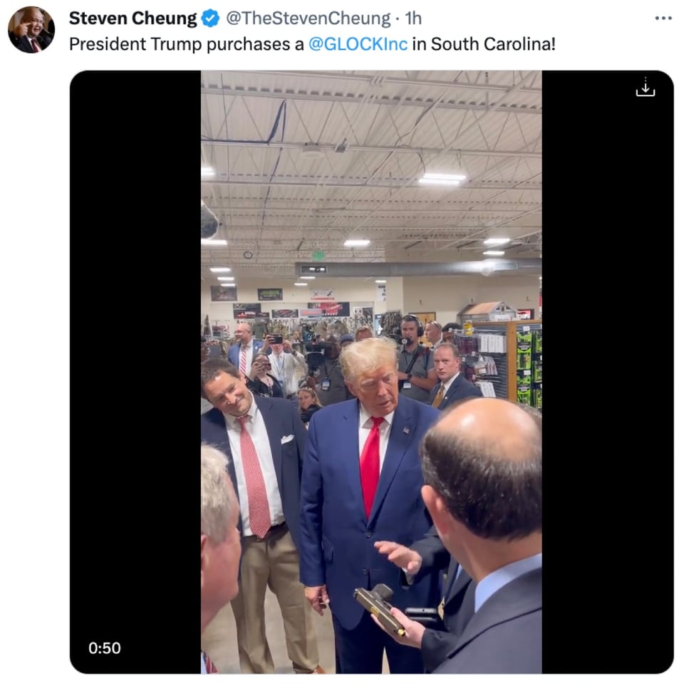 Trump campaigned in a gun store and was presented with a Glock semi-automatic handgun with his image on it. Since Trump is under federal criminal indictment, it is illegal for him to obtain, receive, or purchase a gun.