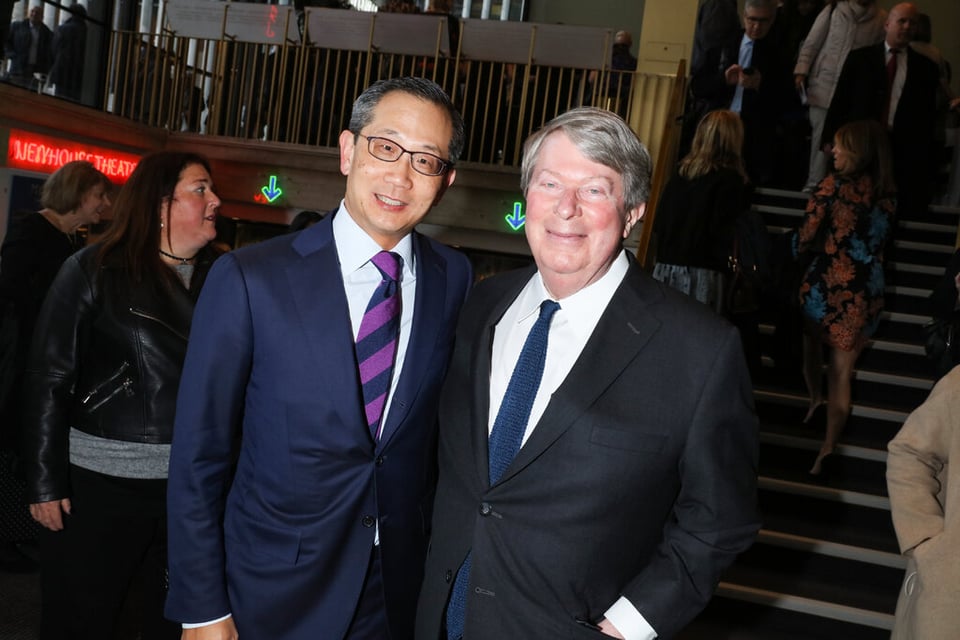 André Bishop, right, will leave his post as Lincoln Center Theater’s producing artistic director in 2025. Kewsong Lee, left, chairman of the theater’s board of directors, will lead the search for Bishop’s successor.