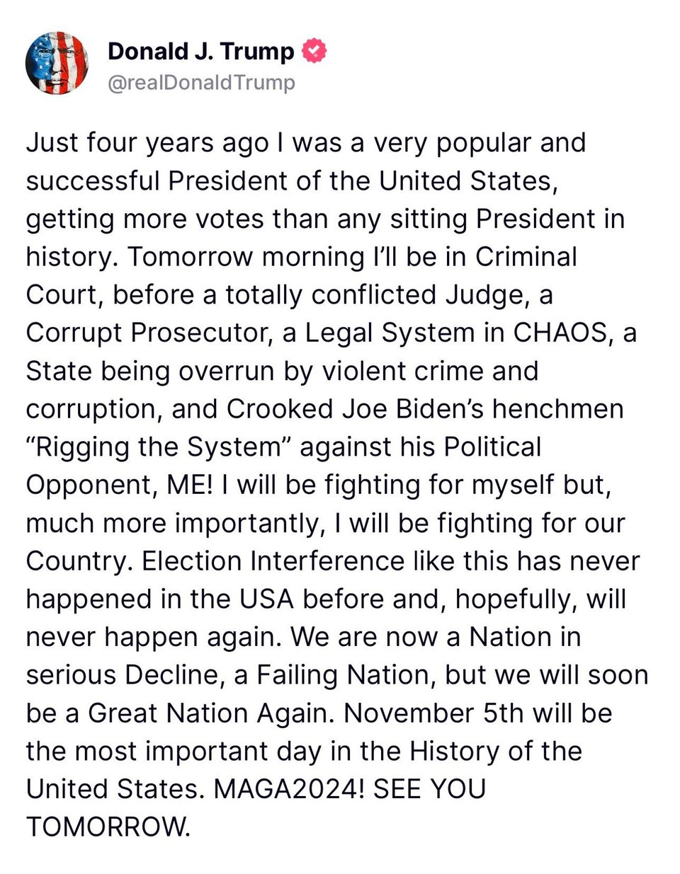 Trump faces his first criminal trial.