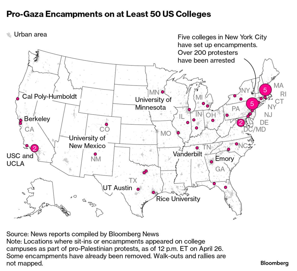 “The decisions at Columbia and Yale and elsewhere to arrest protesters and clear their encampments by force has led to demonstrations at other schools. This activism cascade supports the contagion theory used by many social scientists to explain how protests jump from place to place,” Stephen writes. “But the fact that demonstrations spread does not imply that activists will achieve their goals. So far, there’s little evidence that the Gaza protests or the efforts by universities to restore order are building support for the cause.” (Bloomberg).