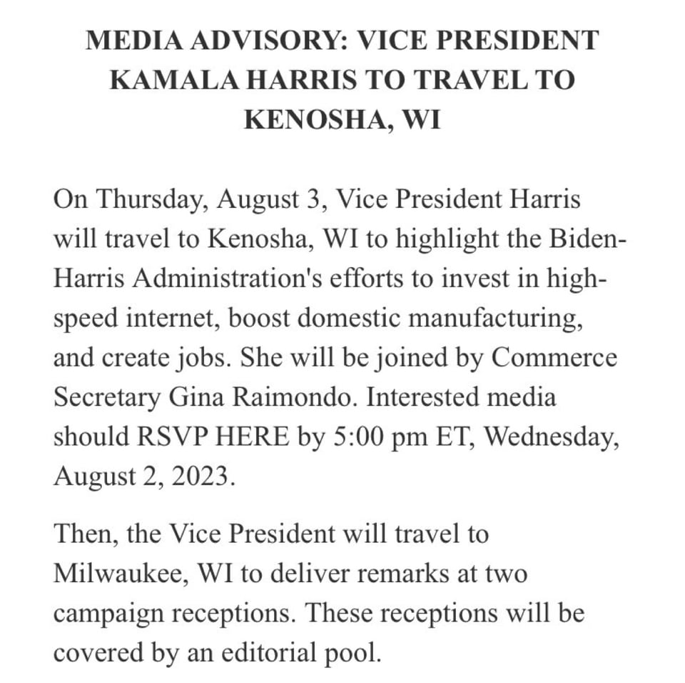 Harris is expected to deliver remarks in Orlando at the African Methodist Episcopal 20th Women's Missionary Society Quadrennial Convention.