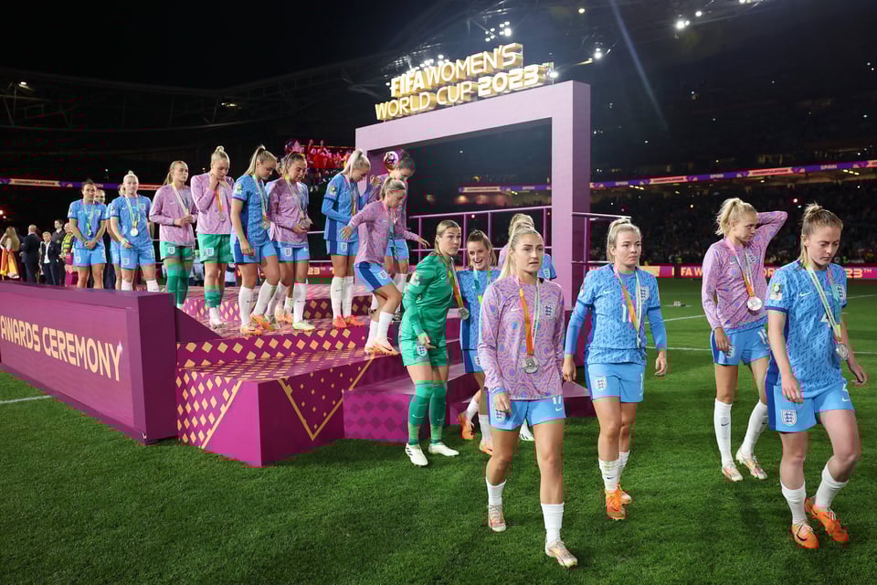 England’s women gathering their runner up medals after Sunday’s World Cup Final.