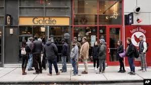 Customers lined up for lunch at the Goldie falafel restaurant in Philadelphia on Monday afternoon.