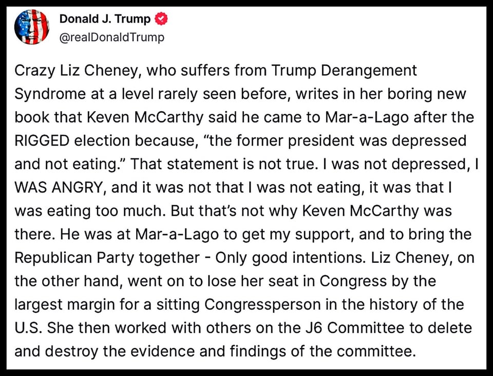 “If you look at what Donald Trump is trying to do, he can’t do it by himself. He has to have collaborators. And the story of Mike Johnson is a story of a collaborator.” (Cheney wrote this in her book as well and before Johnson, who was a complete unknown, was elected House Speaker.).