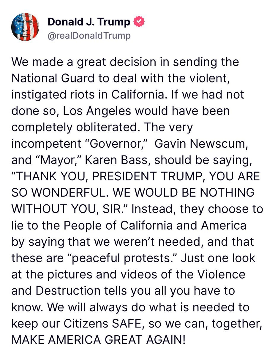 — Gavin Newsom (@GavinNewsom) June 9, 2025