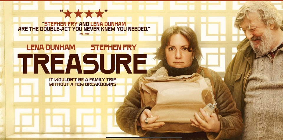A father-daughter road trip set in 1990s Poland, Treasure follows Ruth (Lena Dunham), an American music journalist, and her father, Edek (Stephen Fry), a charmingly stubborn Holocaust survivor, on a journey to his homeland. While Ruth is eager to make sense of her family’s past, Edek embarks on the trip with his own agenda. This emotional, funny culture clash of two New Yorkers exploring post-socialist Poland is a powerful example of how reconnecting with family and the past can be an unexpected treasure. (description from the Treasure distributor’s website)