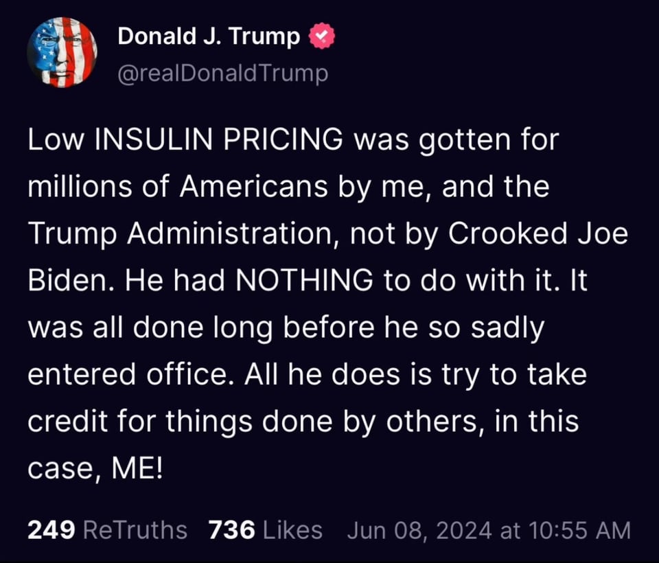 Donald Trump claimed he lowered insulin prices, not Joe Biden.
