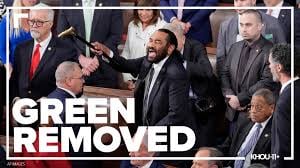 Green was forcibly removed from the chamber, and on Thursday, ten Democrats voted with Republicans to censure him for his righteous behavior, forcing him into the well of the House to be publicly shamed. Thankfully, a couple dozen of his Democratic colleagues—including Ayanna Pressley, Rashida Tlaib, Maxine Waters and Ilhan Omar—surrounded him there in support, singing “We Shall Overcome” as Speaker Mike Johnson tried unsuccessfully to silence them.