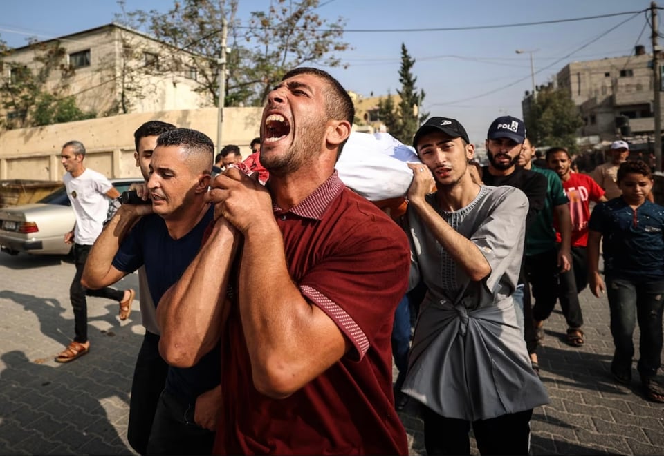 Palestinians mourn a man killed in an Israeli airstrike in Khan Younis last month.