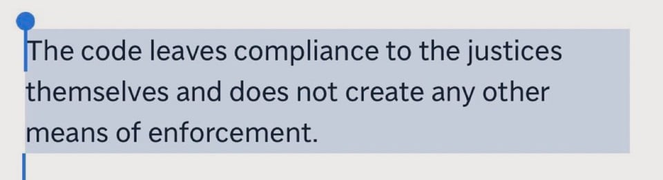 This is a long-overdue step by the justices, but a code of ethics is only binding if there is a mechanism to investigate possible violations and enforce the rules. pic.twitter.com/rmmAHdjCq0