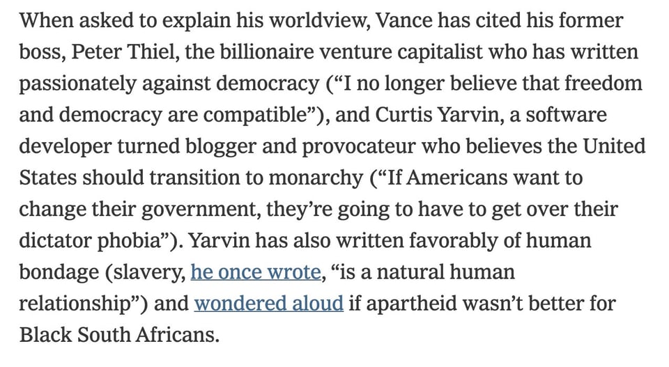 This 👇 includes some of Yarvin’s more “moderate” positions too.