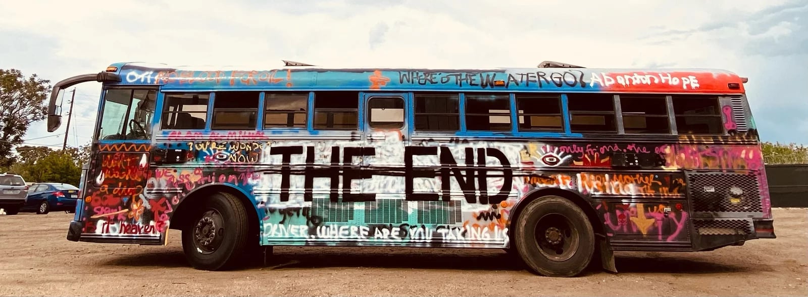 A repurposed school bus from Control Group Productions' climate change-focused immersive theater experience, The End.