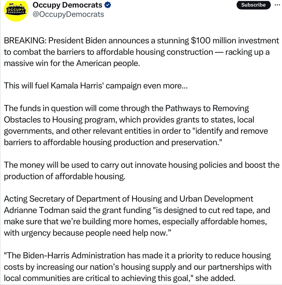 Sen. Sherrod Brown (D-Ohio) has endorsed Harris, but the presidential campaign did not make a stop in increasingly-red Ohio. And Brown is in a similar bucket as Tester, faced with having to outperform Harris and Walz to keep his seat. (Axios)