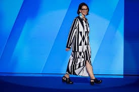 None of the looks were standard political costumery. All of them acted as a frame and form of self-expression for people involved. The result was a little chaotic and kind of fun; a departure from the norm — and a contrast from the red, white and blue dressing that had been the standard at the Republican convention in July. As for Ms. Harris, the tan suit served one final purpose. Every time the camera panned to her sitting in her box smiling and waving at the crowd and the speakers, it triggered another frenzy of speculation about the choice. It was simply one more tool to center her in the conversation as a strategist without having to say another word. (New York Times).