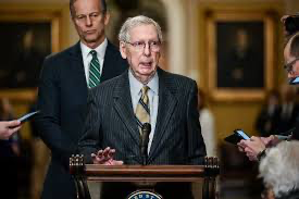 When Mitch McConnell, the top Republican in the Senate, was asked about former President Donald J. Trump’s now-standard stump line claiming that immigrants are “poisoning the blood of our country,” Senator McConnell delivered an indirect but contemptuous response.