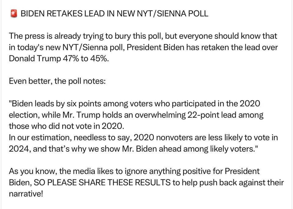 Biden leads in a New York Times/Sienna Poll that didn’t make the paper yesterday.