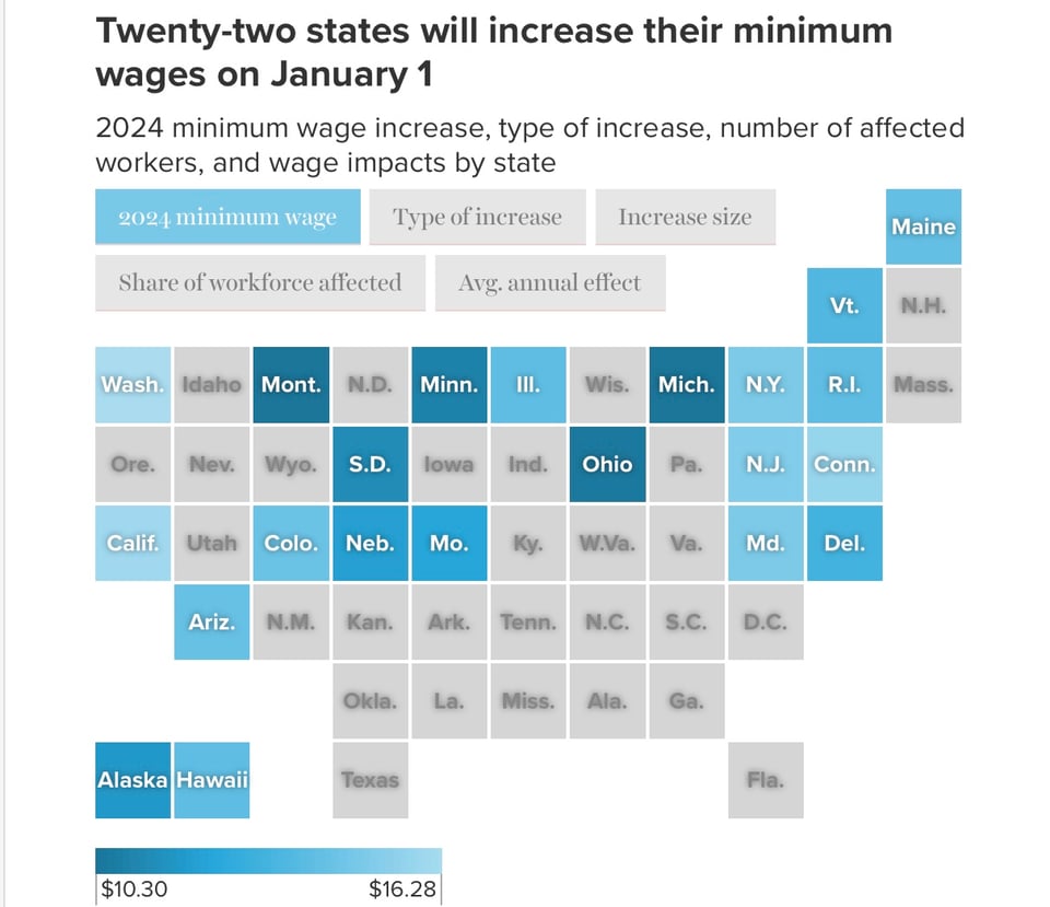Minimum-wage workers in 22 states will be getting raises on Jan.1