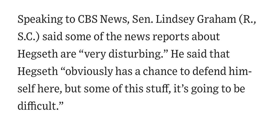 NEW: CBS News reports that Pete Hegseth, Donald Trump’s nominee for defense secretary, was forced to step down from two nonprofit veterans groups after staffers accused him of financial and sexual misconduct, and repeated intoxication.