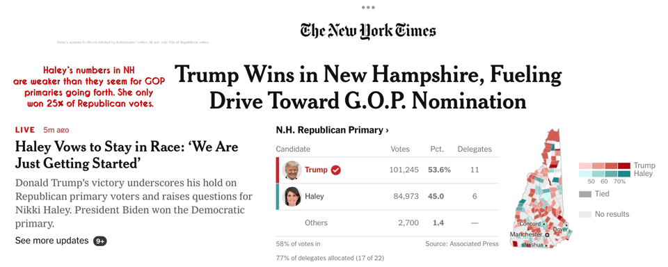 Donald Trump: “We won New Hampshire three times now…We win the primary, we win the generals”