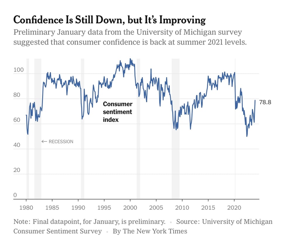 Preliminary January data from the University of Michigan survey suggested that consumer confidence is back at summer 2021 levels.