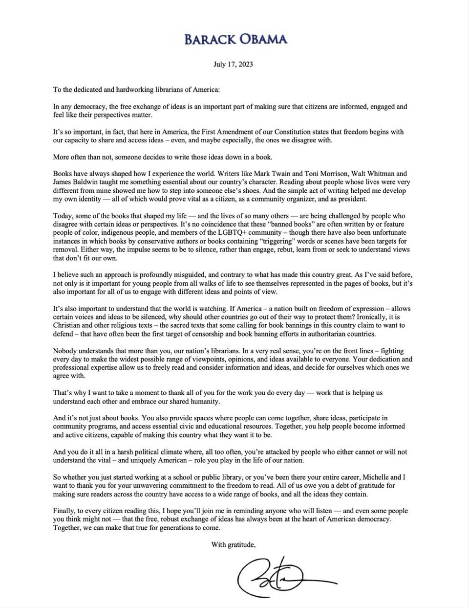 — Barack Obama (@BarackObama) July 17, 2023