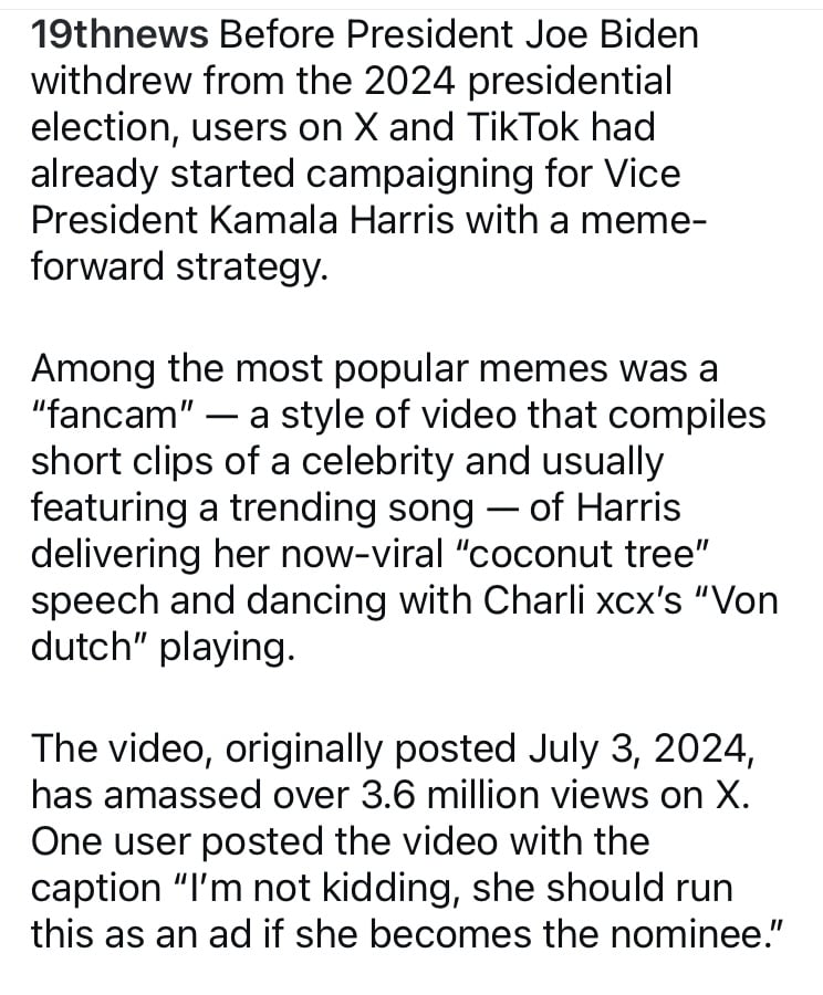 Meme-forward millennials and gen-z social media users are taking over the internet in support of Harris' Charli xcx-inspired "Kamala is brat" campaign.