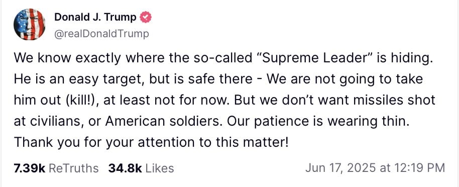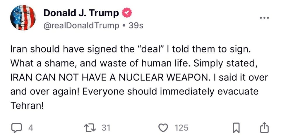 Earlier Trump threatened the lives of 10 million Iranians in Tehran and 40,000 American troops in striking distance of Iran. 👇