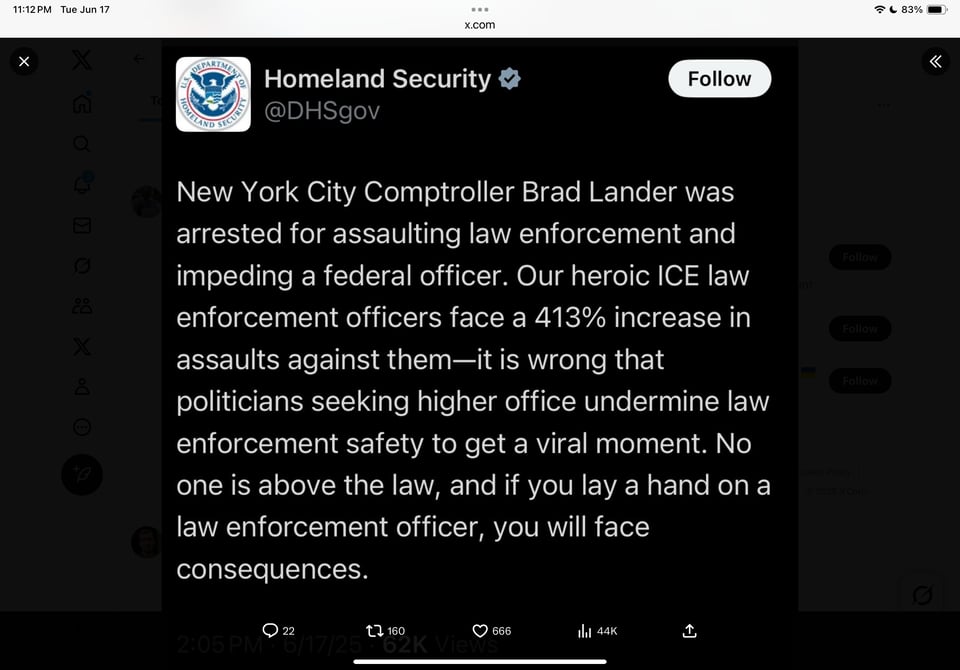This is Homeland Security’s version of NYC Comptroller and candidate for Mayor, Brad Lander’s arrest.👇