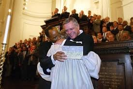 Wilson and Compton embraced the Rev. Kim Crawford Harvie after she signed the couple’s marriage certificate after a Boston ceremony on May 17, 2004.