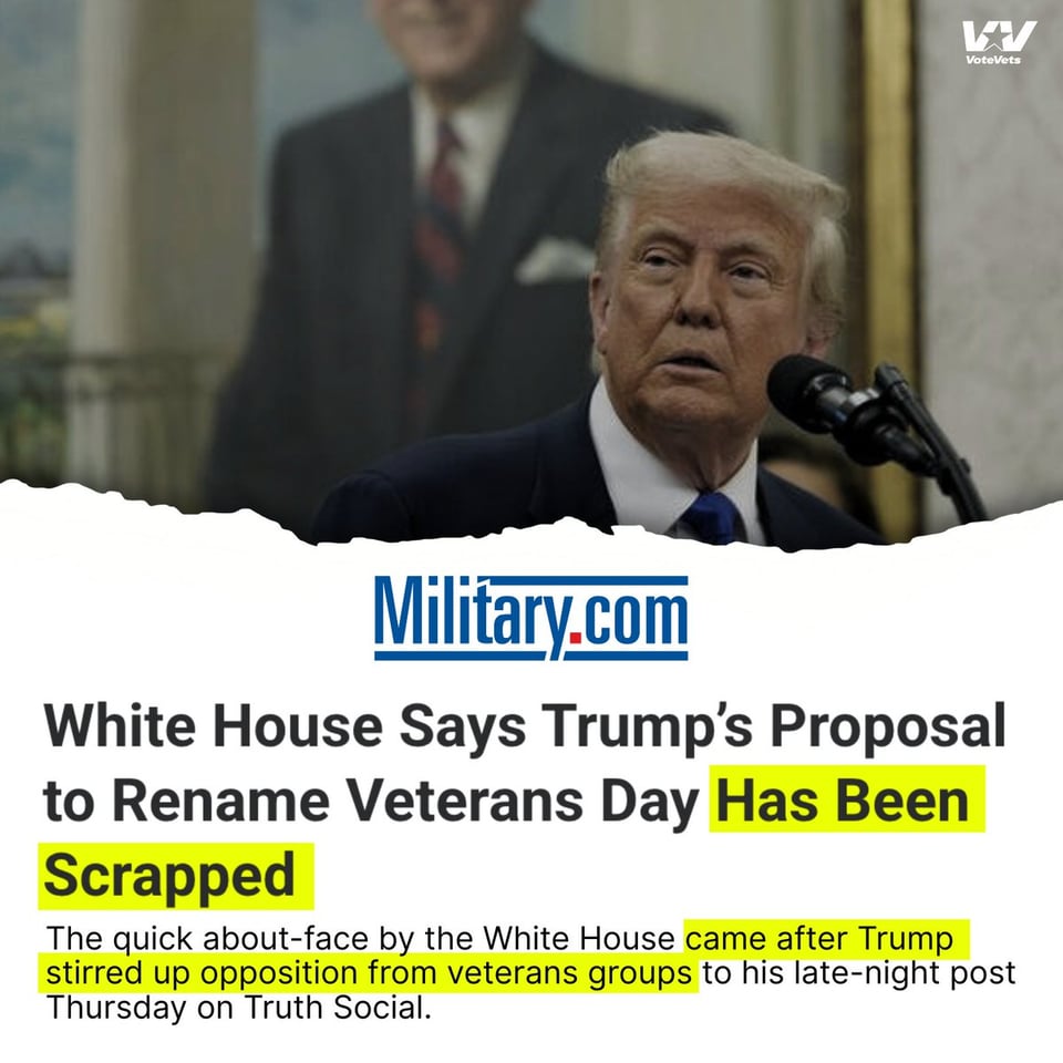 Trump tried to hijack Veterans Day and rename it “Victory Day.” Veterans groups pushed back hard—and the White House folded.