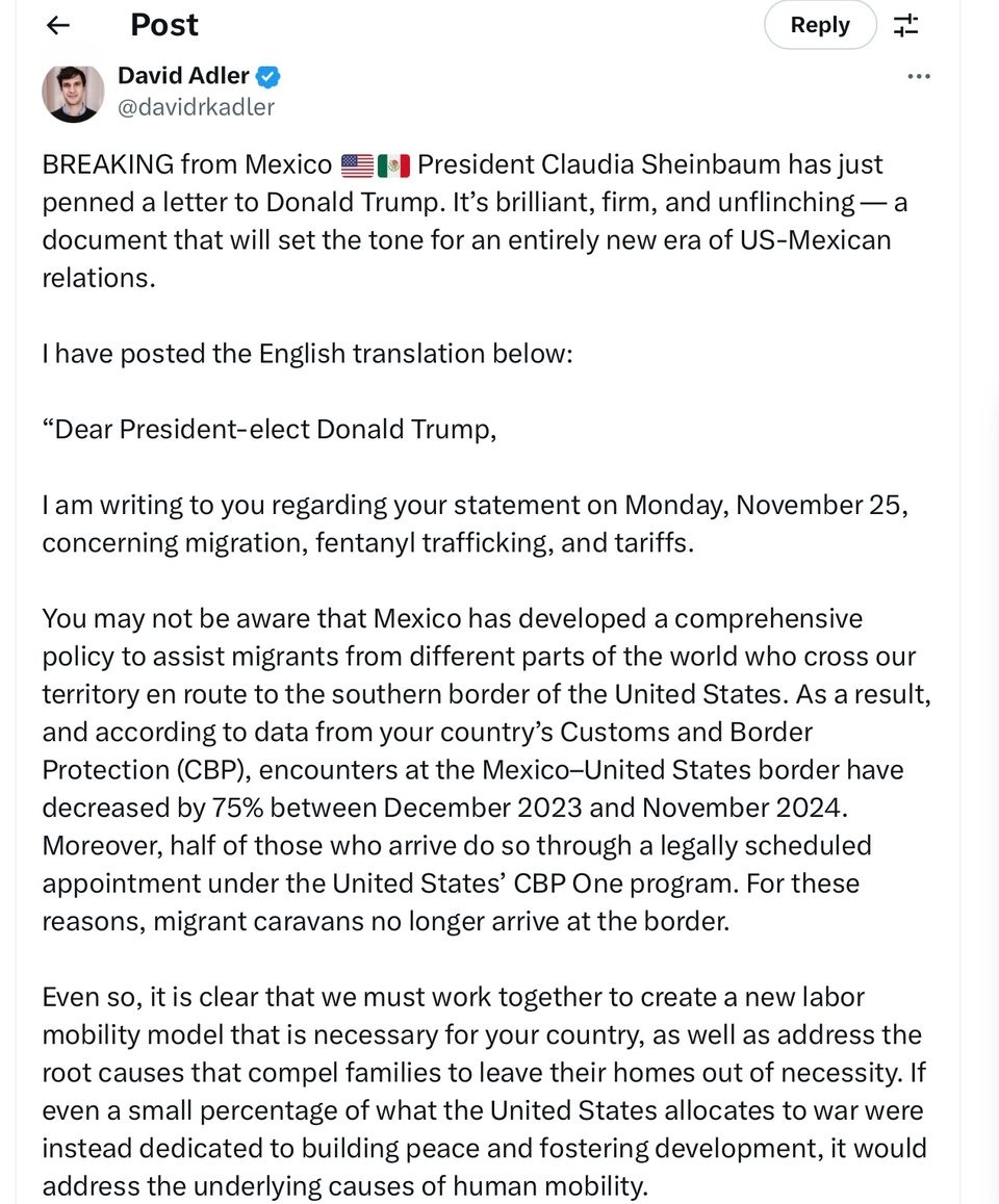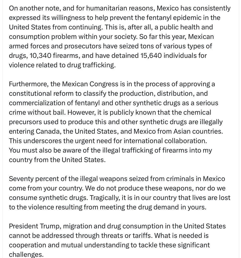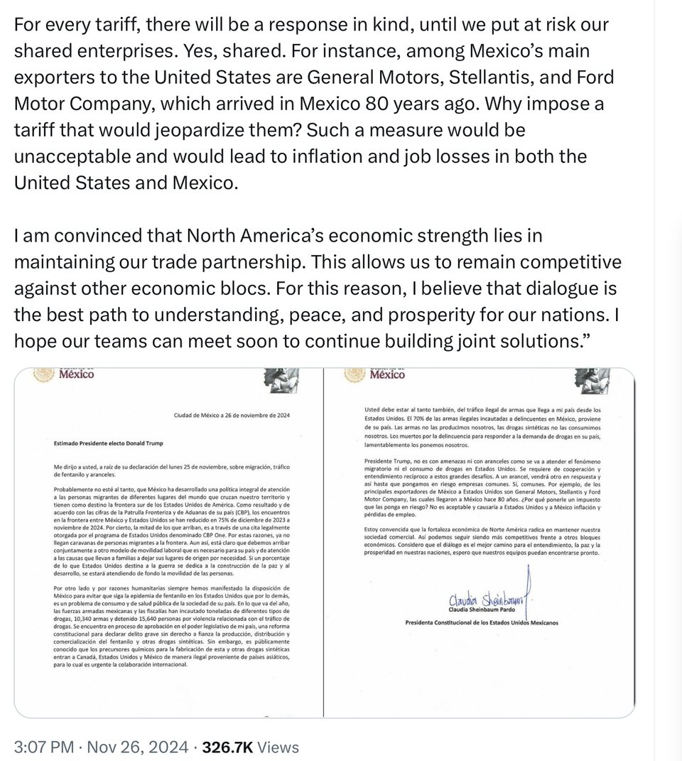 Mexican President Claudia Scheinbaum writes a letter to Trump on tariffs.
