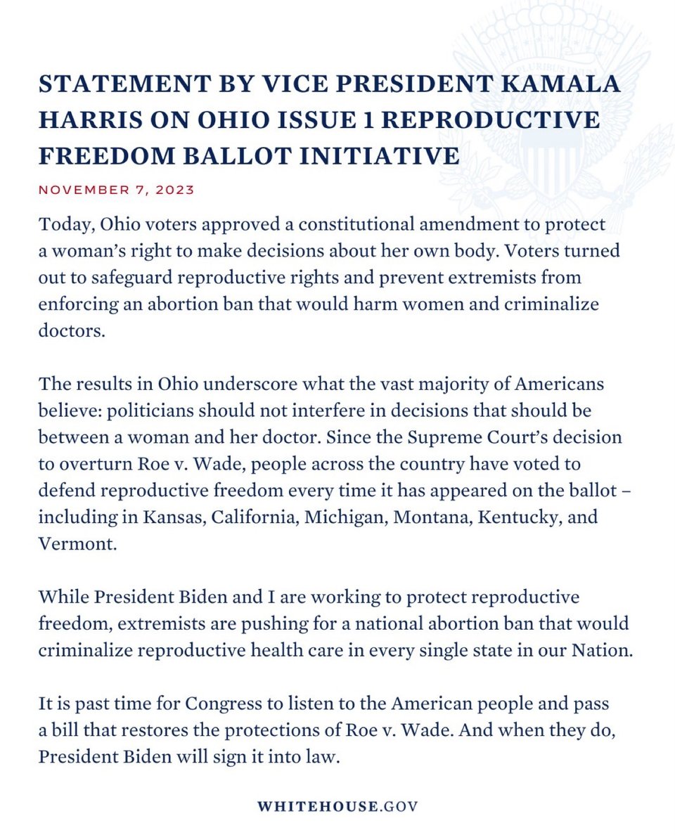 — Vice President Kamala Harris (@VP) November 8, 2023