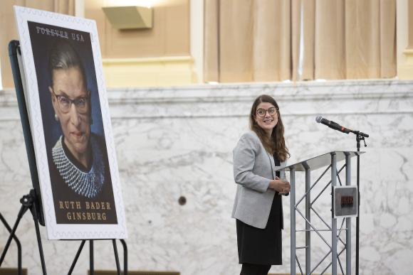 “This stamp is an especially meaningful tribute to my grandmother for many reasons,” Spera said. “She joins the ranks of other justices she revered, like Thurgood Marshall, and other path-marking civil rights advocates like Ella Baker and women’s rights pioneers like Lucretia Mott and Elizabeth Cady Stanton.”