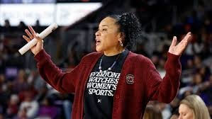 Here, Coach Dawn Staley, of the NCAA Champion-winning South Carolina Gamecocks, shows women sports pride. FYI, her new salary is $3.2 million.
