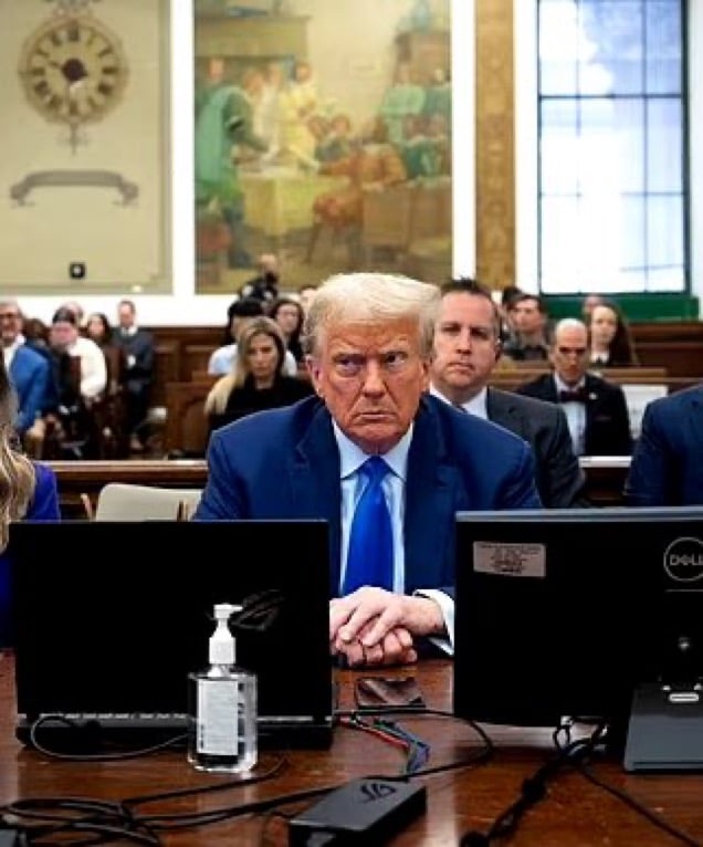 Trump watching Michael Cohen in the Letitia James courtroom.